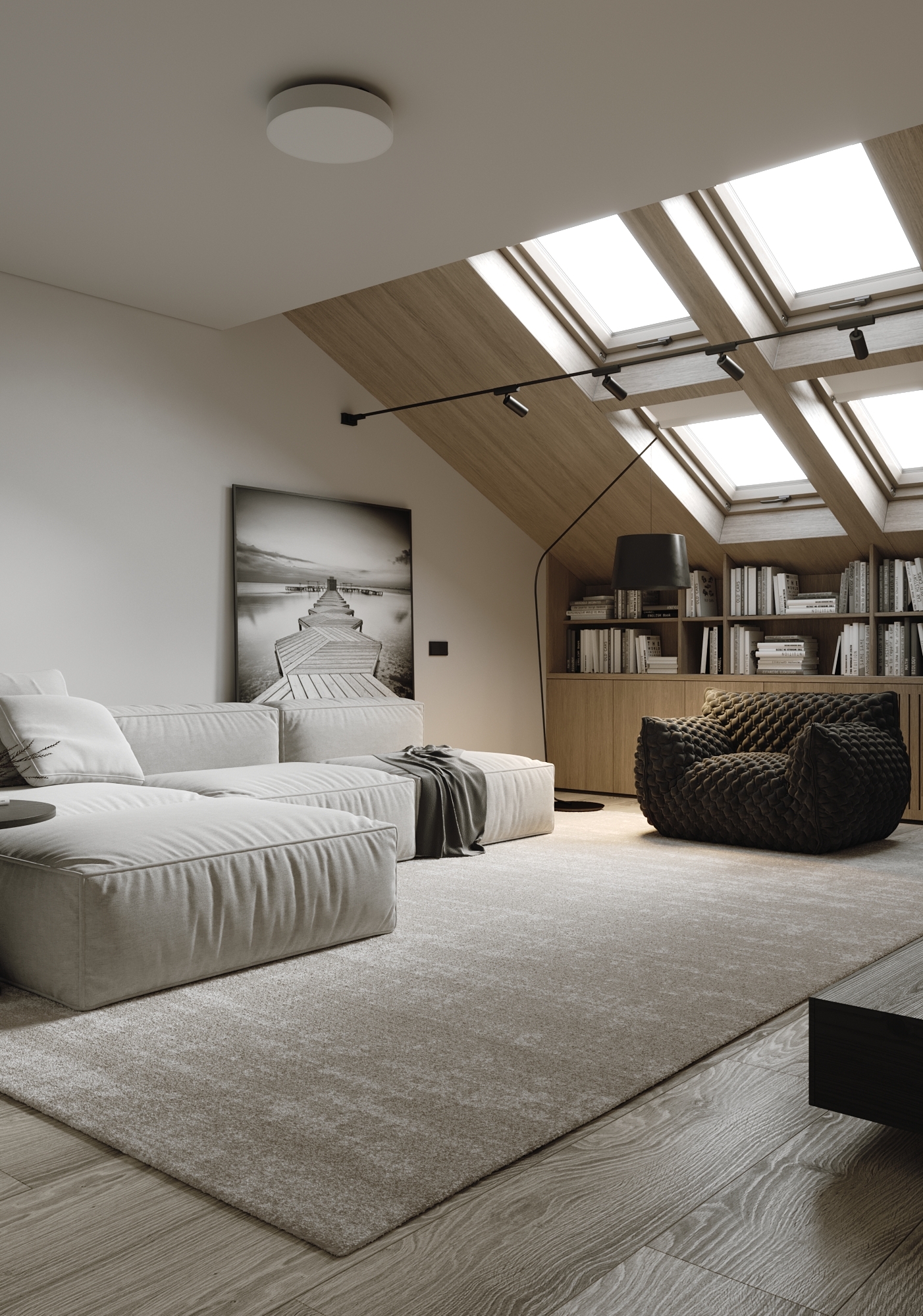 Мансардный этаж частного дома в современной стиле